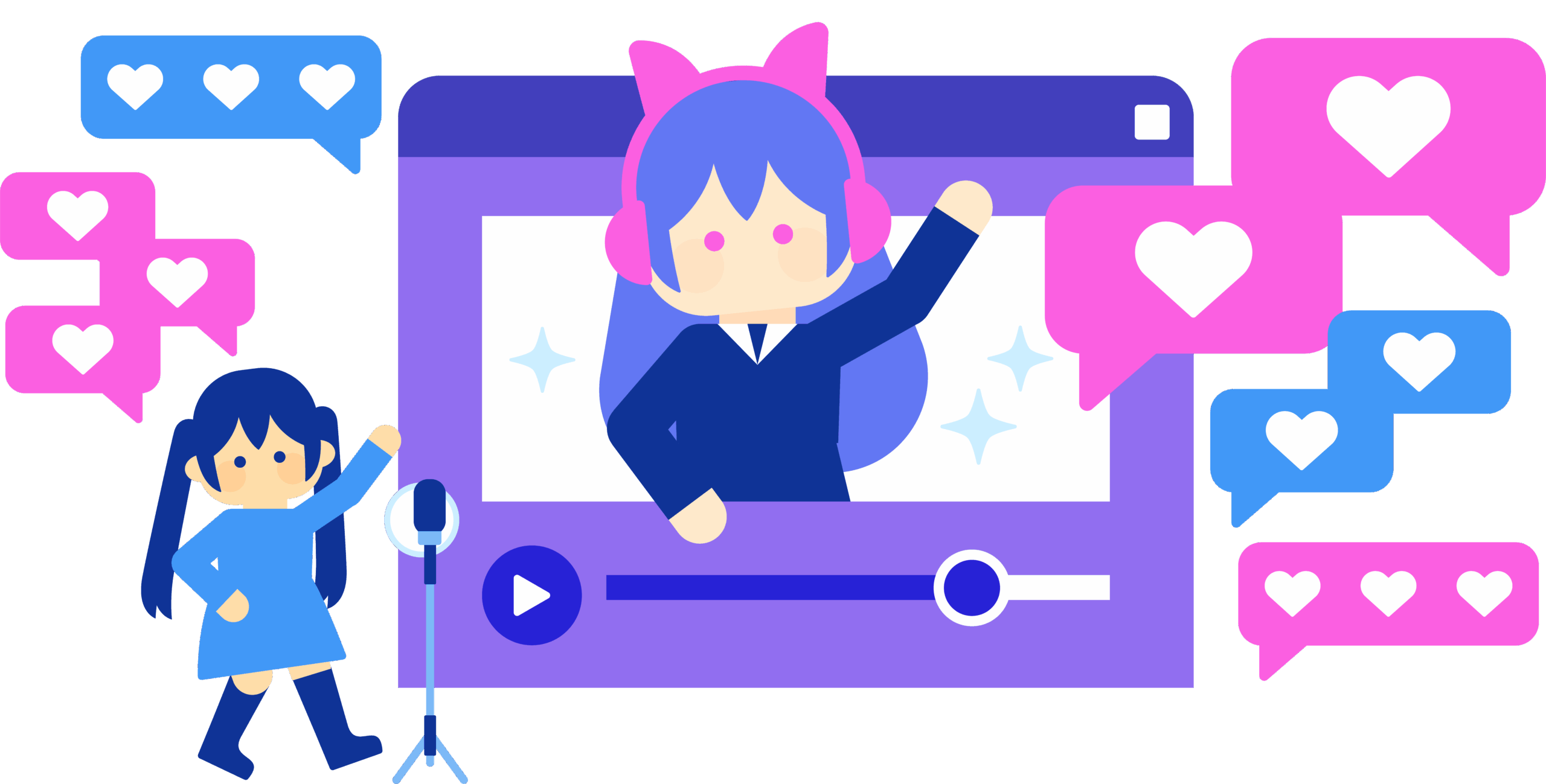 あなたの配信スタイルや声、リクエストに応じたアバターイラストをまずはプレゼント!配信レベルがあがってきたらV tuberのように動くLive2Dアバターもプレゼント!